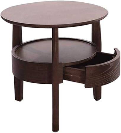 Lhome Tavolino Da Caffe In Legno Massello Con Cassetto Tavolo Da Pranzo A Due Livelli Tavolo Da Pranzo Rotondo Moderno In Grana Di Legno Tavolo Da Comodino Creativo Colore Noce Amazon It