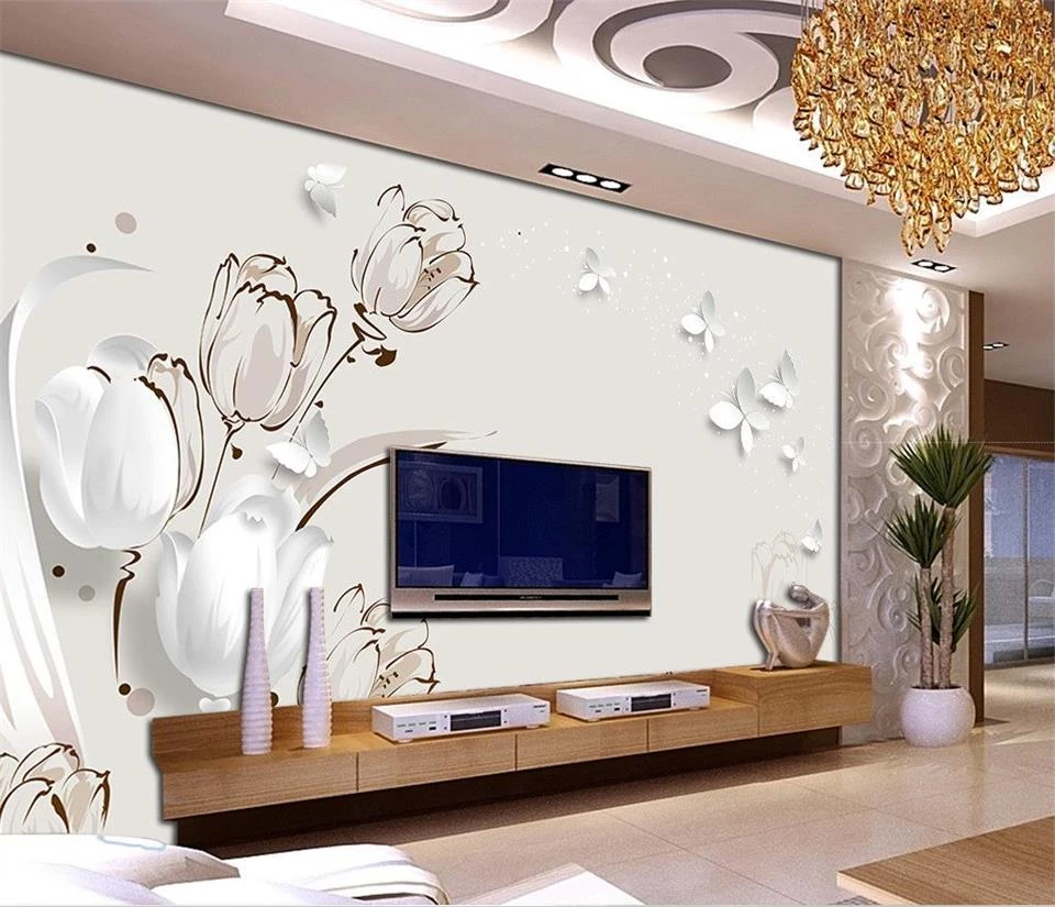 3d behang aangepaste foto muurschildering woonkamer tulpen vlinder 3d schilderij sofa TV achtergrond vliesbehang voor muur 3d|wallpaper for walls 3d|3d wallpaperwallpaper for walls - AliExpress